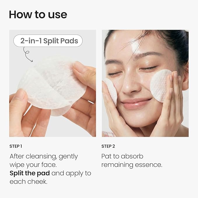 - 🥕 How to Use — Multi-Use Stretch Toner Pads : Made with soft 100% cotton, these Korean toner pads can be used as daily face toner pads to gently wipe away residue and refine skin texture without irritation. For targeted care, stretch or split the pad in half and apply it like a mini facial mask on areas needing cooling or soothing, such as cheeks or forehead. Gentle enough to replace rough face towels, this multi-use toner pad offers flexible, skin-friendly care for everyday routines.
