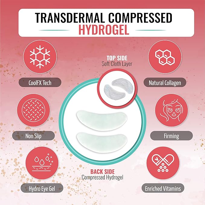 - π‘π’π‘-π¦πππ£: At last, caffeine eye patches NOT drowning in serum. Beneath the form fit fabric is a compressed hydro eye gel layered with nutrients and CoolFX β A refreshing cooling sensation. While other hydrating eye patches slip off, LOOKATME depuffing eye patches stay firm so you can complete a treatment while completing your to do list.
