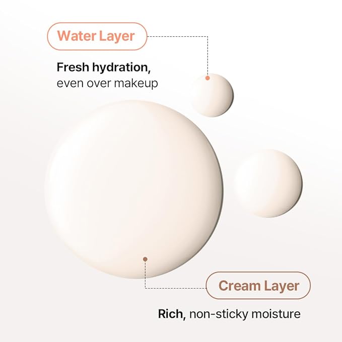 - Double-layer formula (Moisture-rich cream & Refreshing water): Combines the moisturizing and nourishing benefits of a cream while resisting makeup breakdown, even with frequent application over makeup.