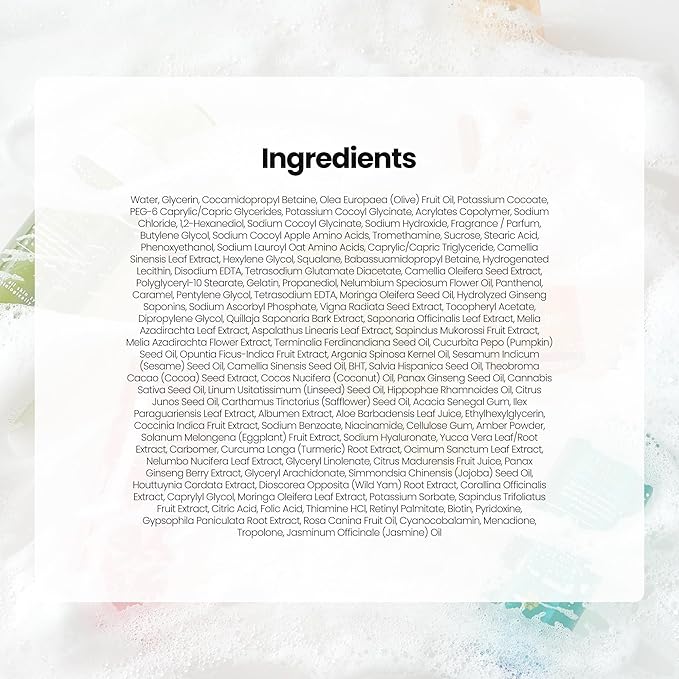 - SKIN-LOVING INGREDIENTS. Fortified with a Multivitamin Complex, this hydrating face wash nourishes and soothes. Herb Tea Extracts help calm the skin, while 19 Plant Oils, including Moringa, Jojoba, and Camellia, provide deep hydration. Plus, Niacinamide refines texture, leaving skin refreshed and renewed.