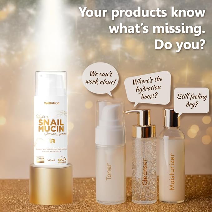 WELLUTION Snail Mucin Essence - Hyaluronic Acid Serum, Korean Anti Aging Skincare, Fragrance-Free, Non-Sticky, Made in USA