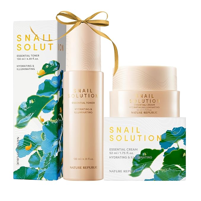 Nature Republic Snail Mucin (Toner & Cream) Set - Korean Skincare, Hydrating with Niacinamide, Face Moisturizer, Moisturizing Skin Care, Glowy Skin